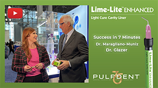 | | | | | | | | | Sponsored | | | | In this video, Dr. Glazer talks about one of his favorite base/liners: Lime-Lite Enhanced™ from Pulpdent®. Lime-Lite Enhanced is a moisture friendly cavity liner known for its exceptional handling and protection against sensitivity. Plus, it has the benefits of Crysta™, which delivers calcium, phosphate, and fluoride to promote remineralization. Smartly priced, Lime-Lite Enhanced is available from your preferred dental dealer. |